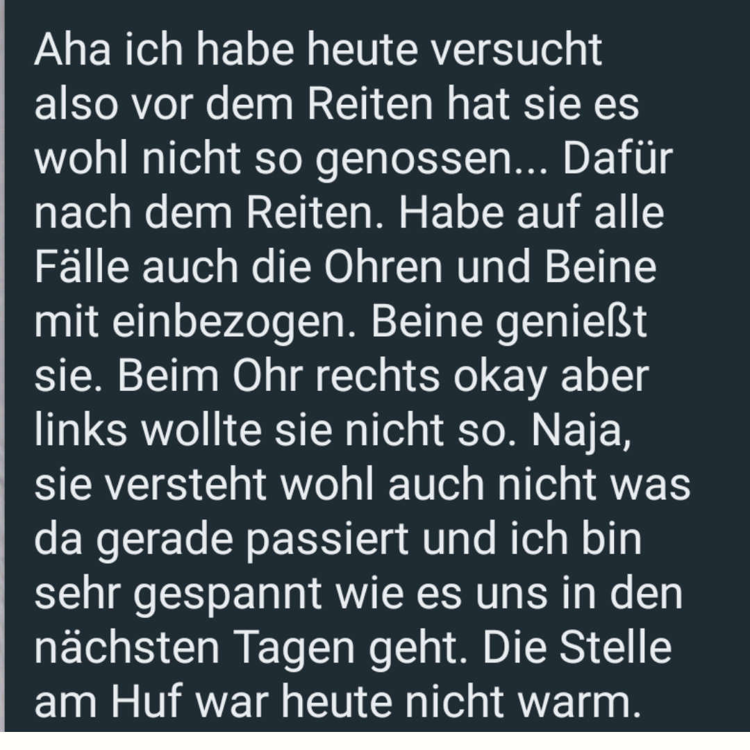 “Ich habe heute bei Campero den Blasenmeridian abgestrichen und es waren deutliche Reaktionen zu sehen, abkauen und schütteln 🤗" ✨ Kathy
