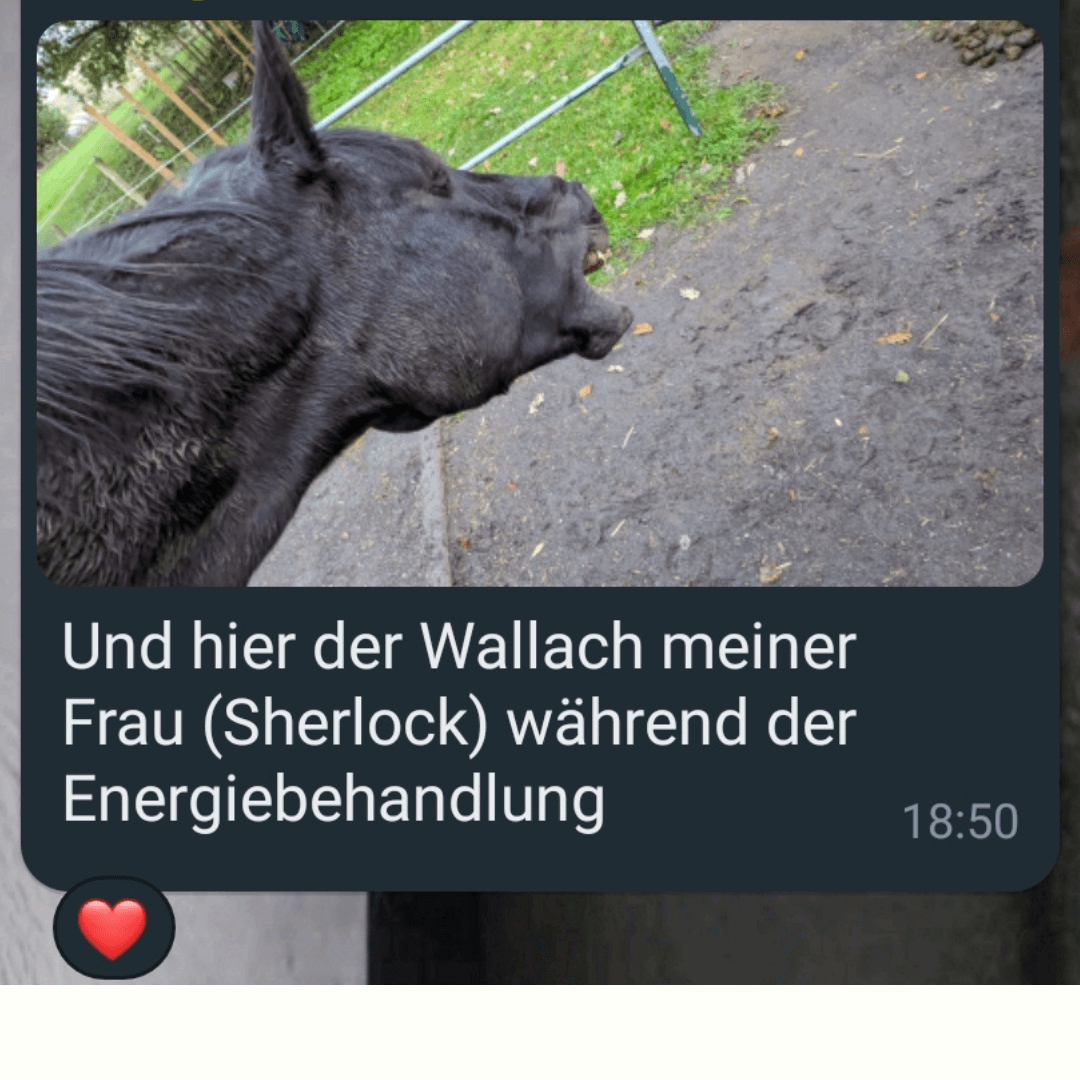 “Haben gerade unsere Pferde nach dem Longieren noch mit Energiearbeit beglückt. Die Reaktion der beiden hat uns vom Hocker gehauen. Einfach wunderbar 💓💓💓🌈 Beide haben auch schon vorher Energiearbeit bekommen, aber da gab es keine so deutliche Reaktion." ✨ Georg